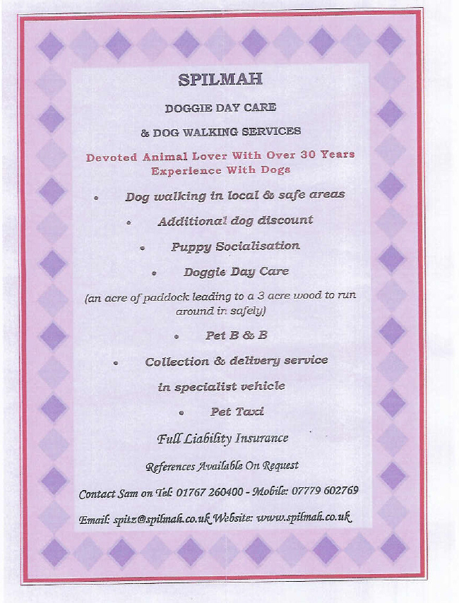 HOLLYWOOD DOGS - Make your dog feel like a star. All breeds professionally groomed to the highest standard. Clipping, hand stripping, bath and nail trimming. 15% discount with first booking. Collection and delivery service. New: link to Hollywood Dogs 01767 627425 or 07899 787799 |