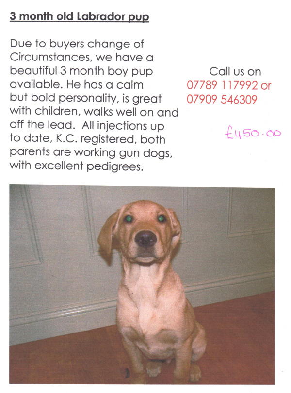 Message received 19th August 2010: Lab Rescue have been asked to home two dogs together – aged 5 and 9. 5 year old is yellow and 9 year old is black. The 9 year old suffers from separation anxiety and needs his best friend really badly. Both boys – castrated I think and neither of them have any real problems as long as they are together… At the moment LR doesn’t have any homes that will take them. Just wondered if you could put the word about amongst all your horsey friends on your email to see if there is anyone out there. I would have to go and check the home and do it all properly according to LR rules. Anyone who is interested, or knows anyone who might be, can ring me on 01438 871458. I have got photos of the boys and will send them to anyone who wants to see them. |