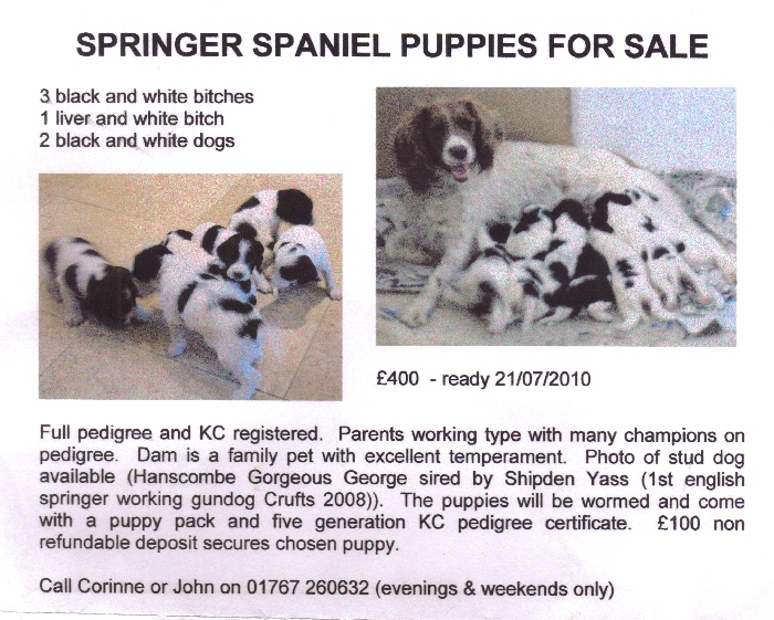 DOGS FOR REHOMING Download poster with further details. Advert in: 20th January 2010 |