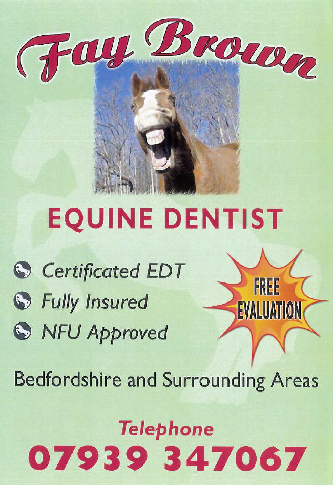 Looking for an Equine Dentist? Bedfordshire/Cambridgeshire Border Based, but will travel; Competitive Rates (no work no fee); Flexible Working to suit you...  Call 07752 257153 or twilliams_eqdt@yahoo.co.uk
